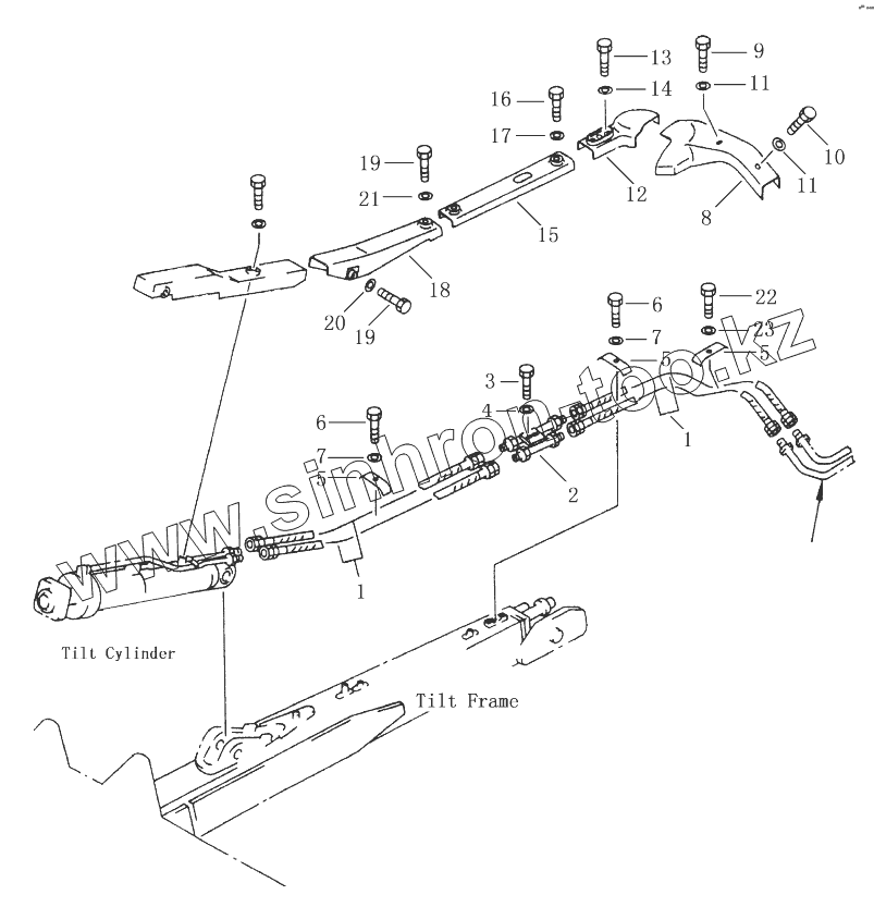 Каталог запасных частей к технике: Shantui SD23. BLADE TILT CYLINDER PIPING