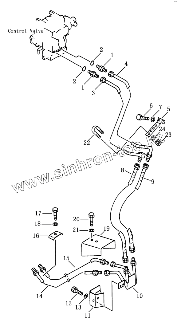 Каталог запасных частей к технике: Shantui SD23. HYDRAULIC PIPING (TANK TO TILT CYLINDER)