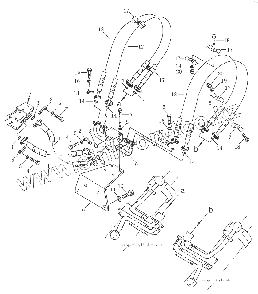 Каталог запасных частей к технике: Shantui SD23. THREE SHANK RIPPER PIPING
