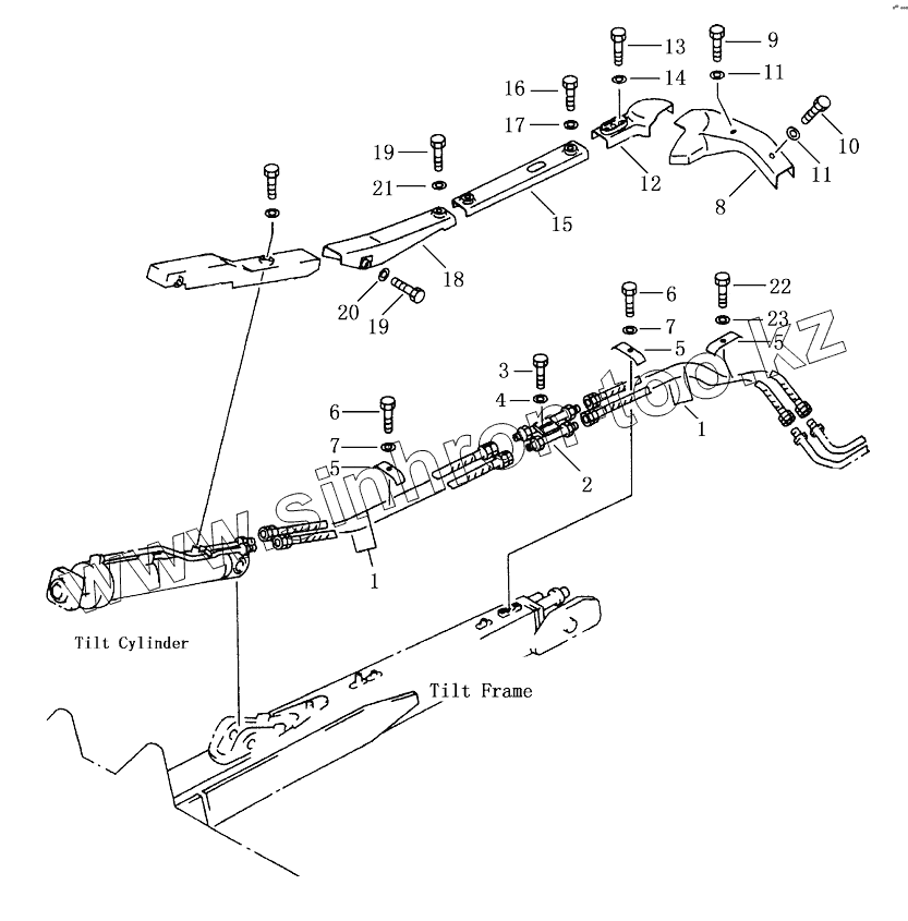 Каталог запасных частей к технике: Shantui SD23 (вариант). BLADE TILT CYLINDER PIPING