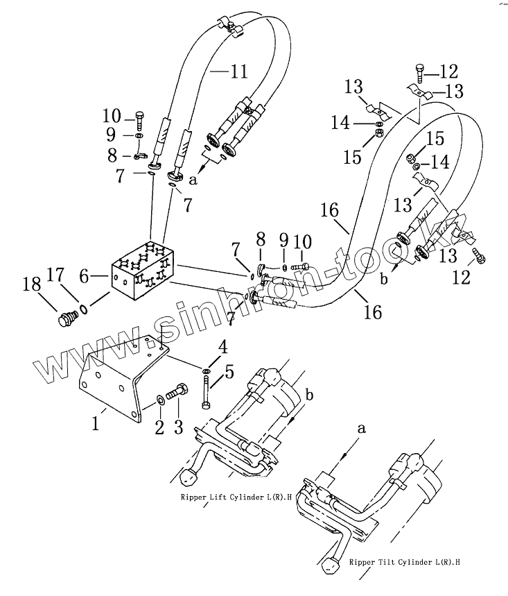 Каталог запасных частей к технике: Shantui SD23 (вариант). SINGLE SHANK RIPPER PIPING