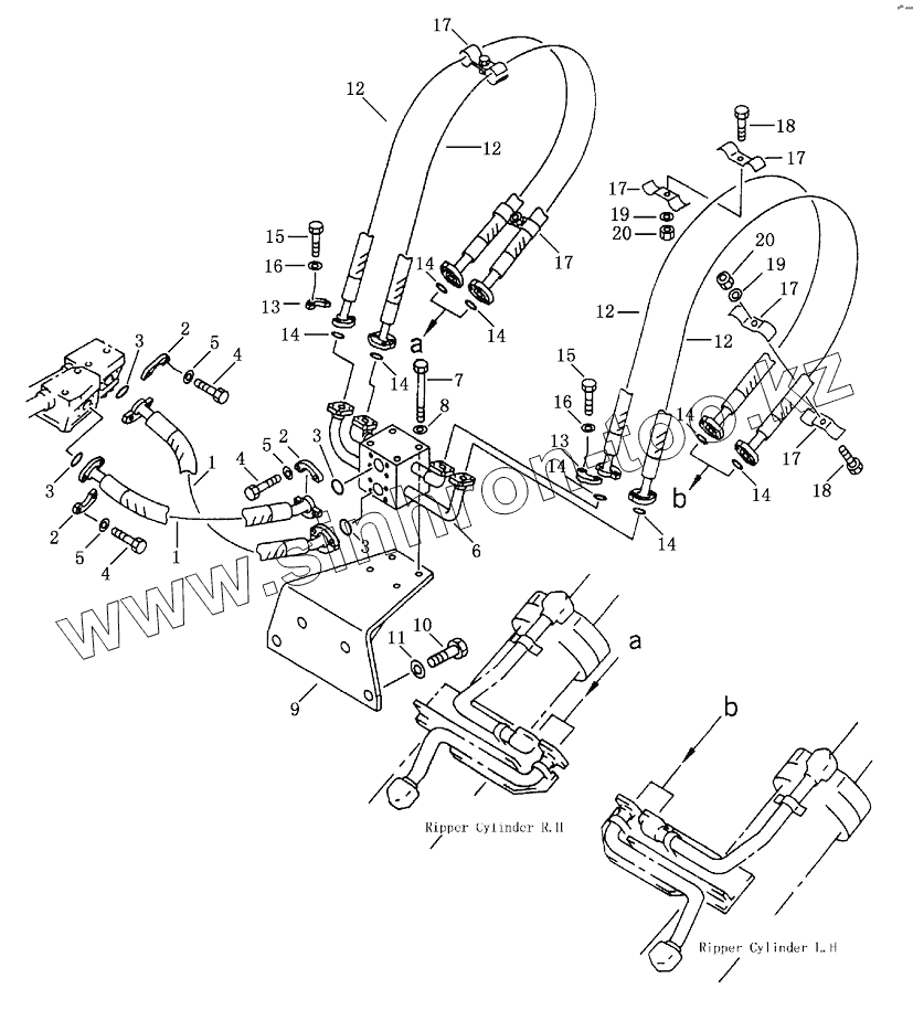 Каталог запасных частей к технике: Shantui SD23 (вариант). THREE SHANK RIPPER PIPING