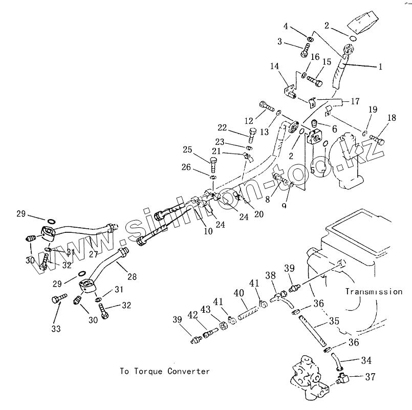 Каталог запасных частей к технике: Shantui SD23 (вариант). TORQUE CONVERTER AND OIL COOLER PIPING