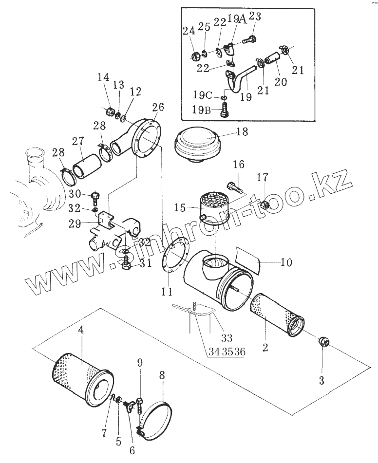 Каталог запасных частей к технике: Shantui SD32. AIR CLEANER AND CAP