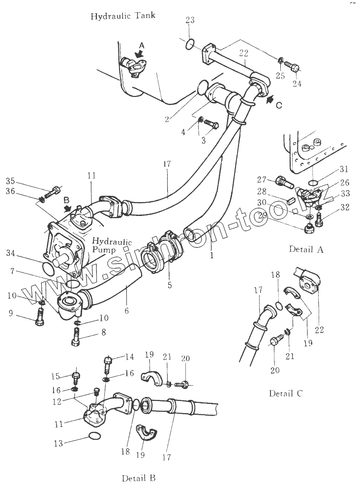 Каталог запасных частей к технике: Shantui SD32. HYDRAULIC PIPING (TANK TO PUMP)