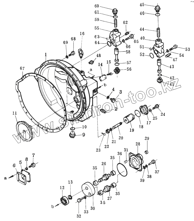 Каталог запасных частей к технике: Shantui SD32. TORQUE CONVERTER HOUSING AND REGULATOR VALVE