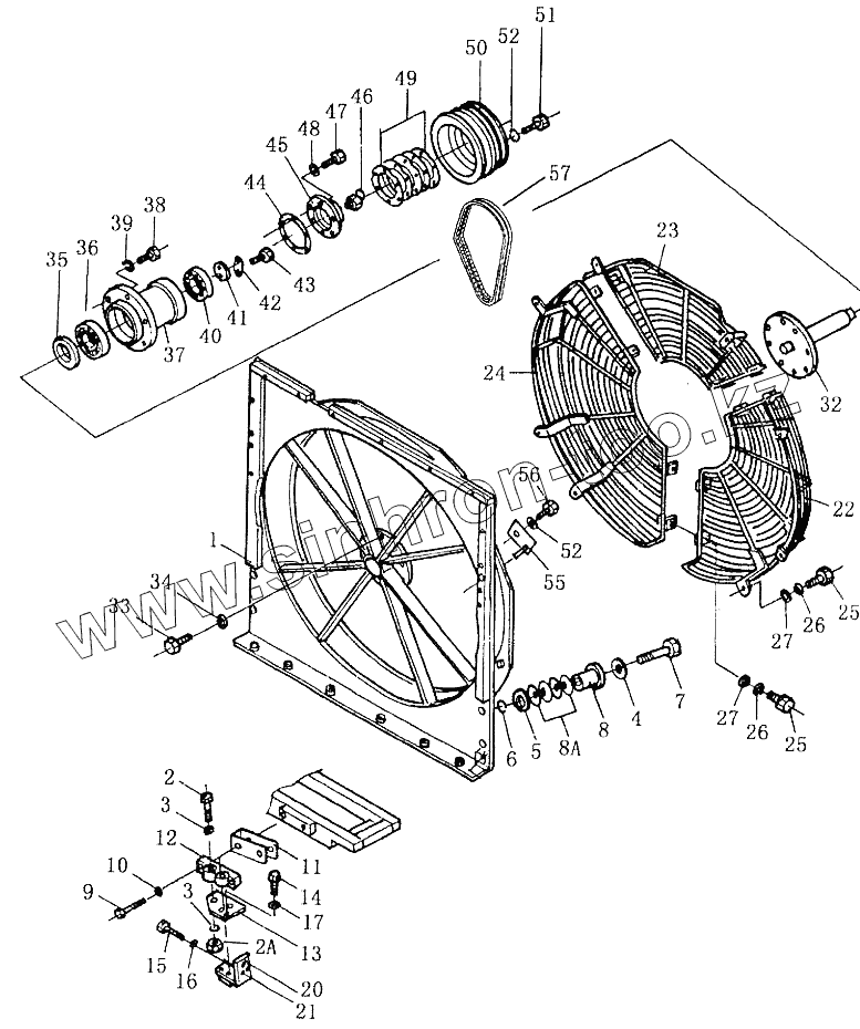 Каталог запасных частей к технике: Shantui SD42-3. RADIATOR FAN GUARD AND NET