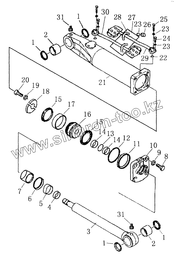 Каталог запасных частей к технике: Shantui SD42-3. TILT CYLINDER (LEFT)
