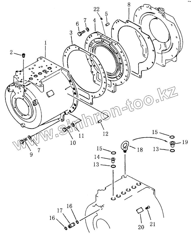 Каталог запасных частей к технике: Shantui SD42-3. TRANSMISSION CASE ASSY