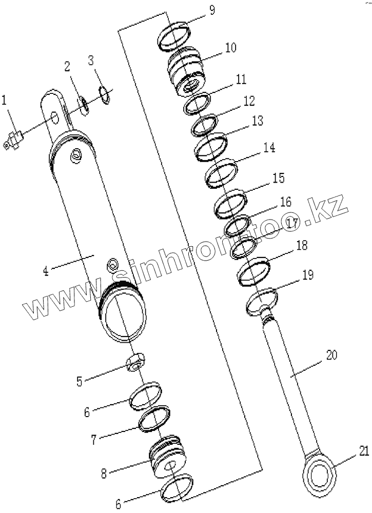 Каталог запасных частей к технике: Shantui SG16-3. TILT OIL CYLINDER ASSY (R.H.)