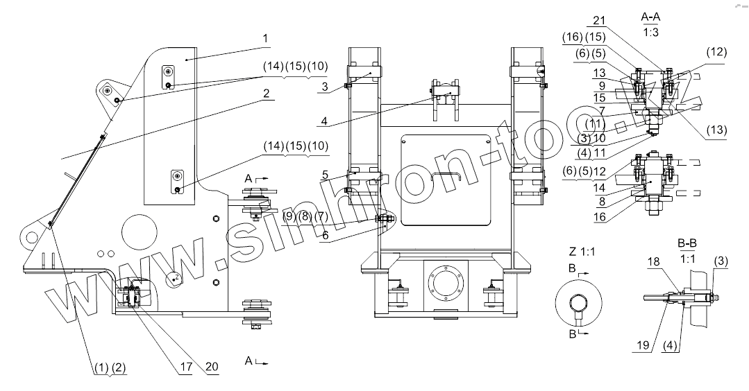 Каталог запасных частей к технике: Shantui SL-30W. Front frame assembly