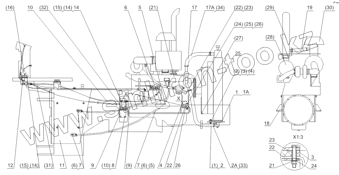 Каталог запасных частей к технике: Shantui SL-50W. ENGINE DEVICE (FOR WEICHAI ENGINE)