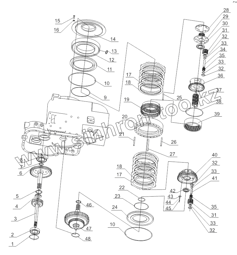 Каталог запасных частей к технике: Shantui SL-50W. GEARBOX ASSEMBLY 2 (370801)