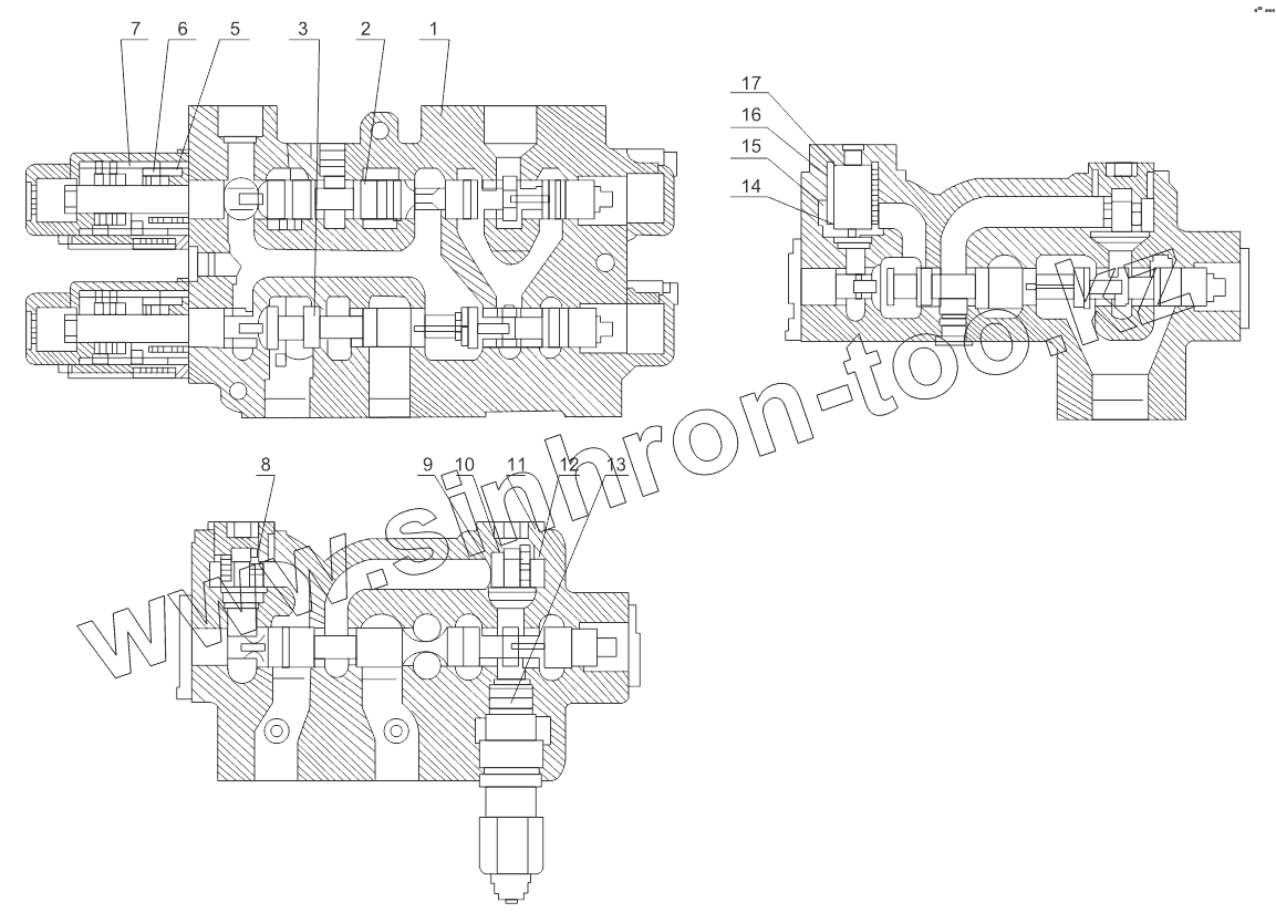 Каталог запасных частей к технике: Shantui SL-50W. HYDRAULIC CONTROL MULTIPLE UNIT VALVE YDF3