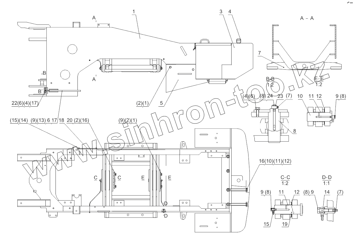 Каталог запасных частей к технике: Shantui SL-50W. REAR FRAME ASSEMBLY