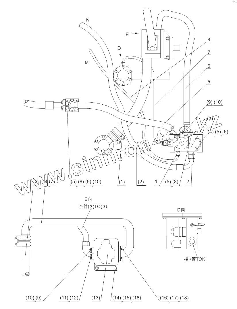 Каталог запасных частей к технике: Shantui SL-50W. STEERING PUMP/PRIORITY VALVE PIPING SL50W-2
