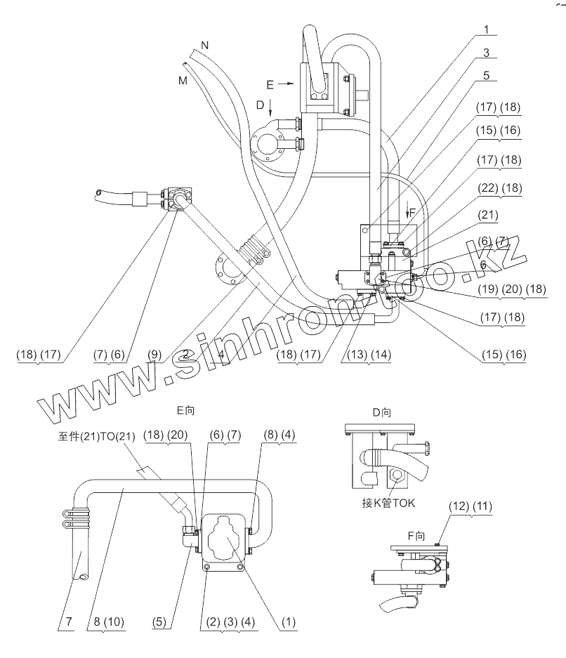 | 2 | DG956-05002 | Confluence tube , unloading valve to oil way board | |