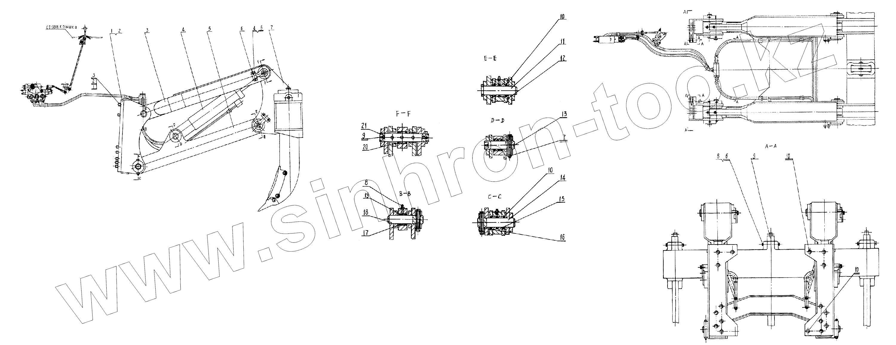 Каталог запасных частей к технике: Shehwa HBXG SD7. 0Т33000 Трехзубый рыхлитель