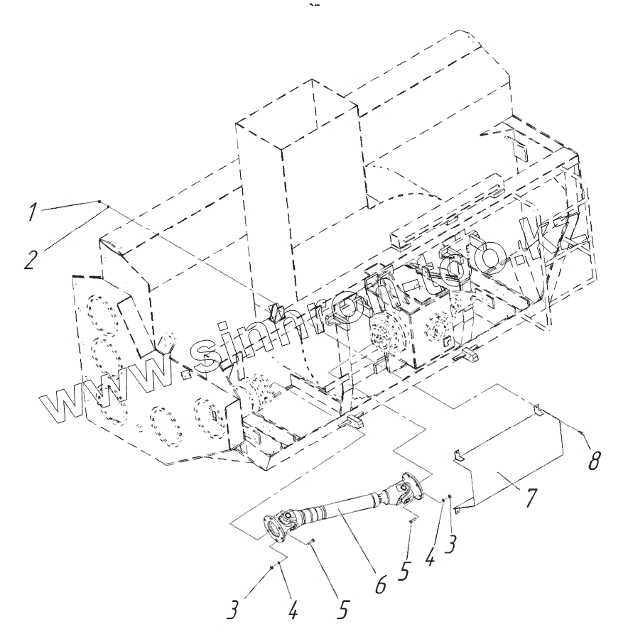 Каталог запасных частей к технике: СпецАгрегат ДЭ-210БМ. Привод шнеков. Установка карданного вала.