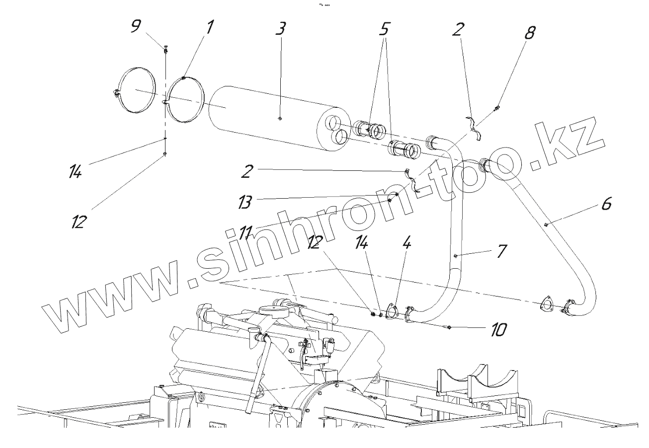 Каталог запасных частей к технике: СпецАгрегат ДЭ-210БМ. Установка системы выпуска газов