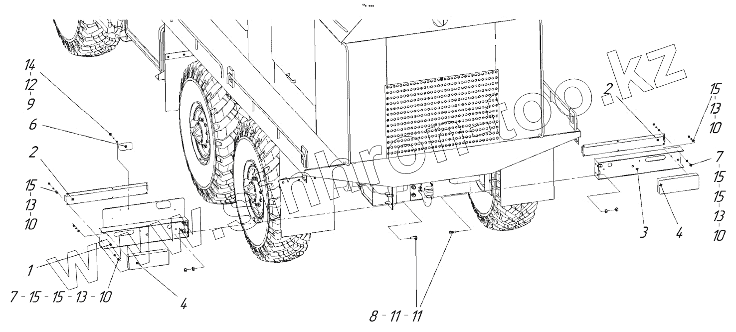 Каталог запасных частей к технике: СпецАгрегат ДЭ-210БМ. Установка задних фонарей