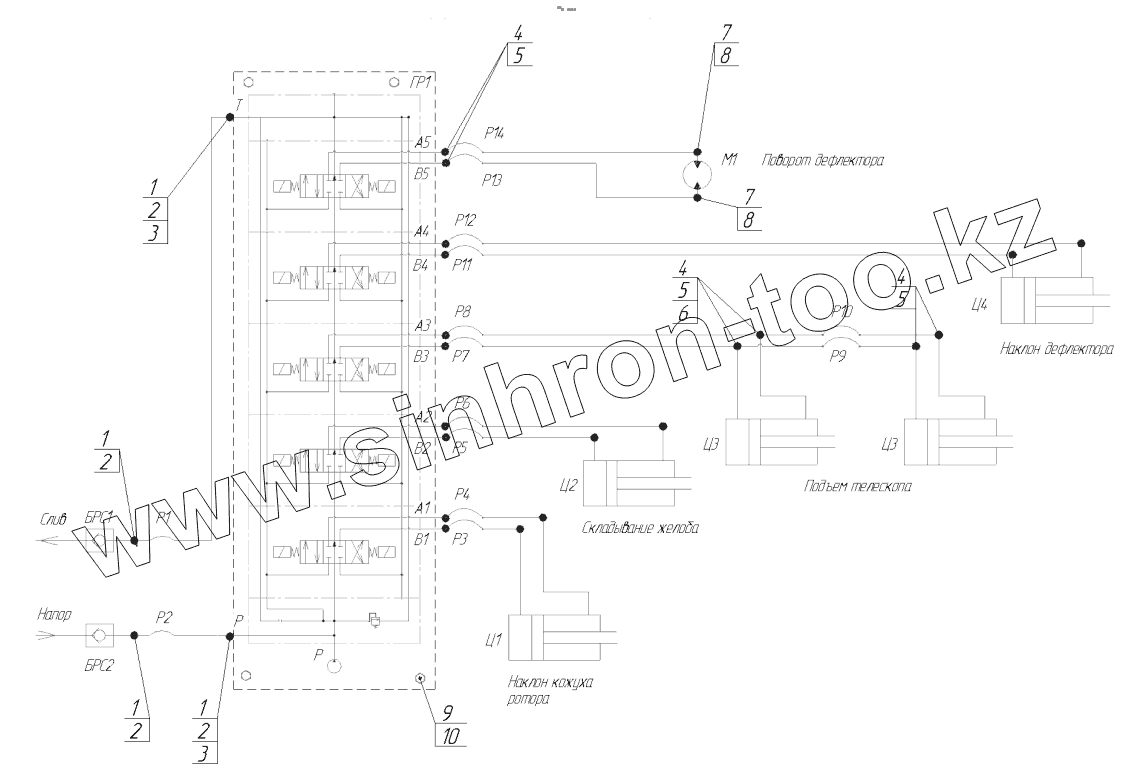 Каталог запасных частей к технике: СпецАгрегат ФРС-1 (ФРСУ-1). Погрузочный желоб. Гидросистема