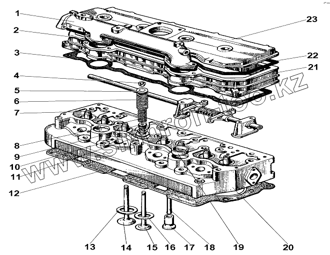 Каталог запасных частей к технике: ТТМ-3902 "Тайга". Головка блока цилиндров. Клапаны и толкатели клапанов