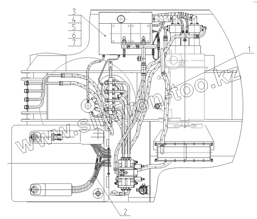 Гидроуправление на поворотной платформе (монтажная схема)