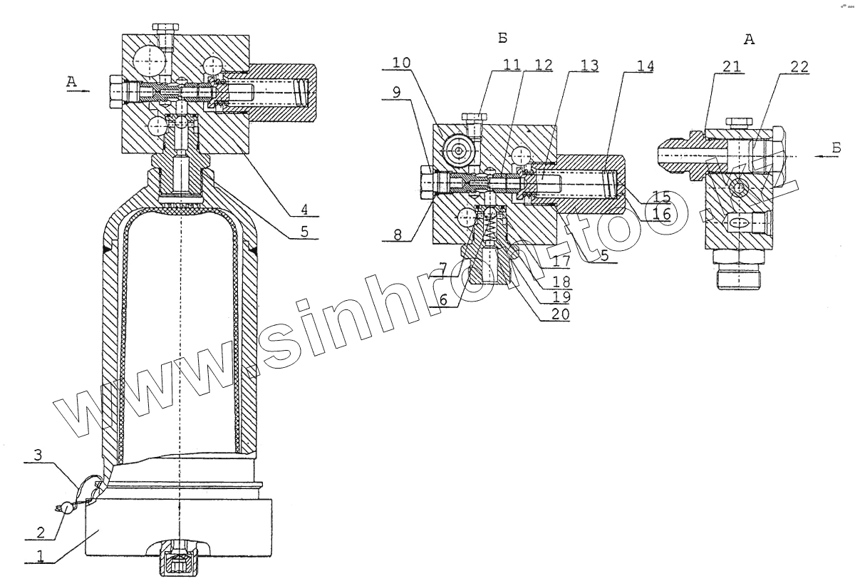 Каталог запасных частей к технике: ТВЭКС E145W (ЕК-14). Пневмогидроаккумулятор с гидроклапанами