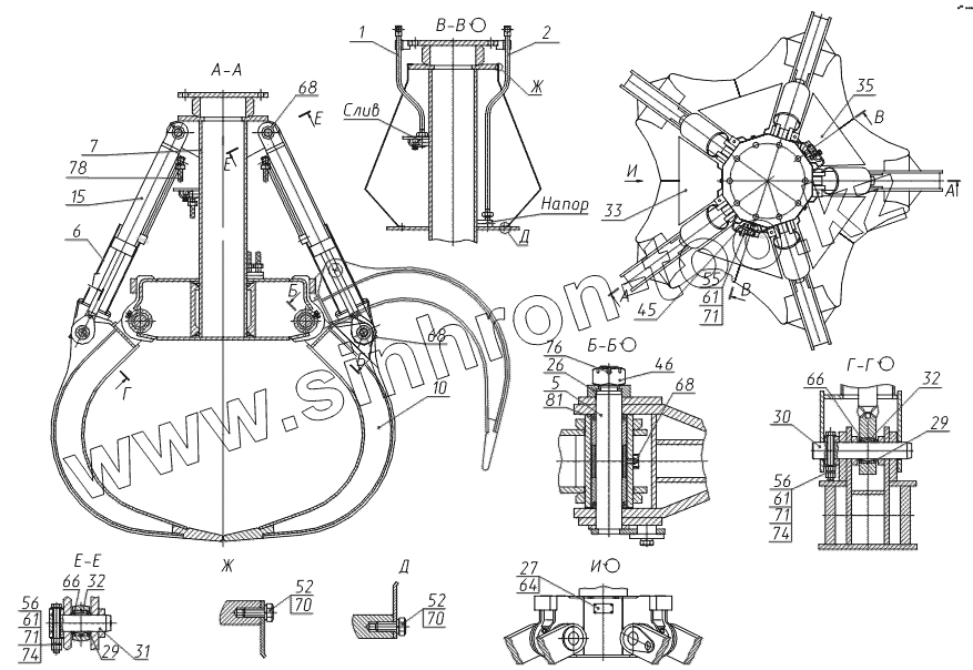 Каталог запасных частей к технике: ТВЭКС E185W (ЕК-18). Металлоконструкция грейфера ГП-554