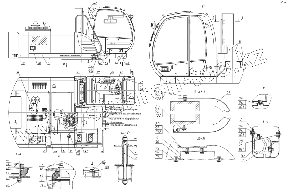 Каталог запасных частей к технике: ТВЭКС E185W (ЕК-18). Платформа поворотная с механизмами