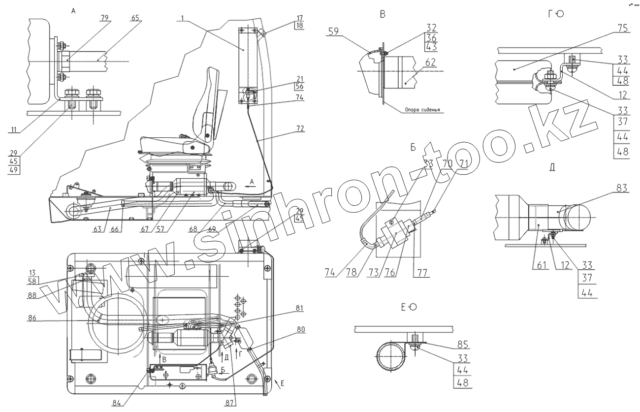 Каталог запасных частей к технике: ТВЭКС E185W (ЕК-18). Установка отопителя