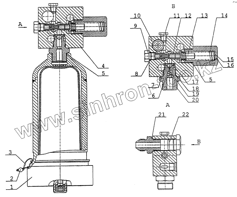 Каталог запасных частей к технике: ТВЭКС E185W (ЕК-18). 64002.10.000 Пневмогидроаккумулятор с гидроклапанами