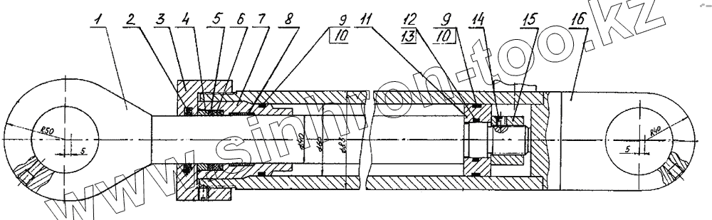 Гидроцилиндр выносных опор (с уплотнениями «Элконт», «ГидраПак») ЭО-3323А.71.82.000-01, ЭО-3323А.71.82.000-11