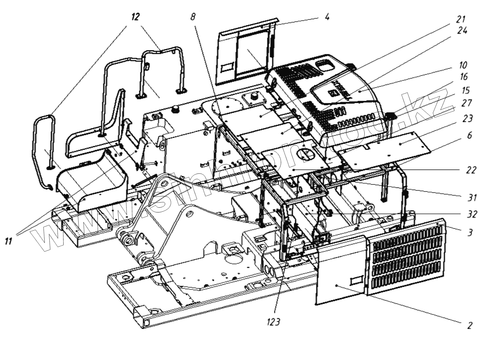 Каталог запасных частей к технике: ТВЭКС E225LC. 202064000000 00 Установка капота
