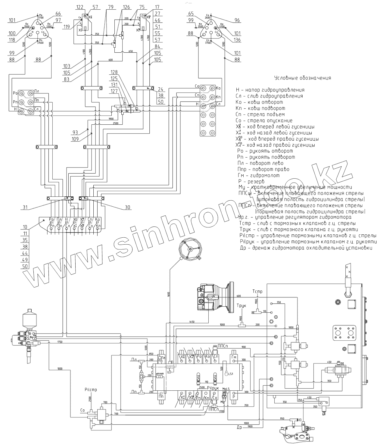 Каталог запасных частей к технике: ТВЭКС E225LC. 225-05-42.21.000 Гидроуправление экскаватора