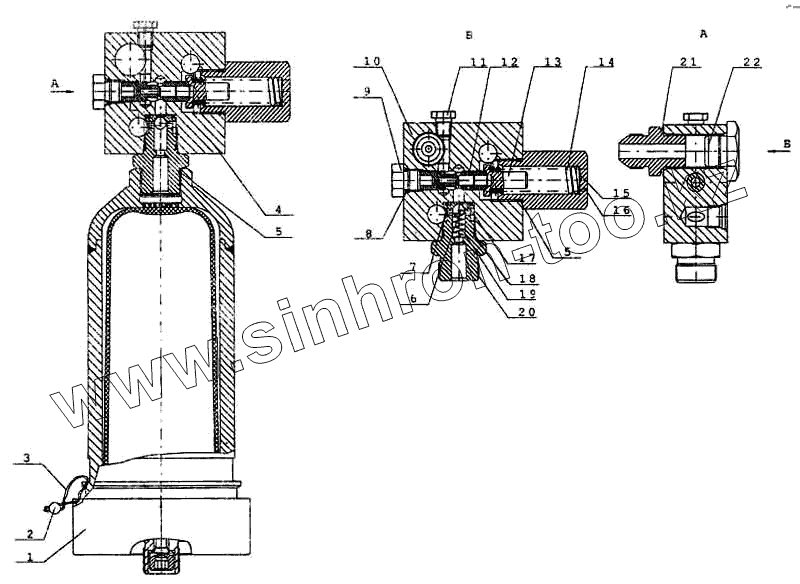 Каталог запасных частей к технике: ТВЭКС ЕК-12. Пневмогидроаккумулятор с гидроклапанами
