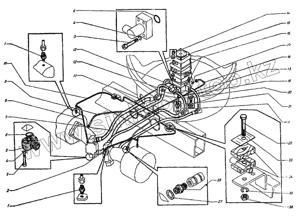 Каталог запасных частей к технике: ТВЭКС ЭО-3122. Трубопроводы гусеничной тележки