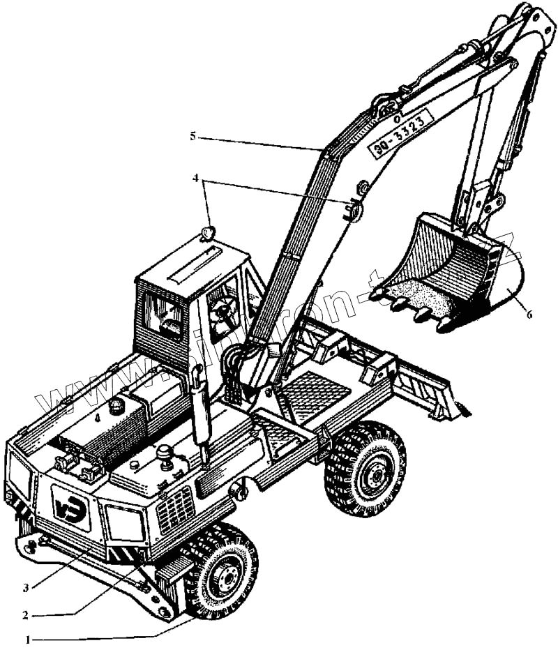 Каталог запасных частей к технике: ТВЭКС ЭО-3323. Одноковшовый пневмоколесный экскаватор с гидроприводом