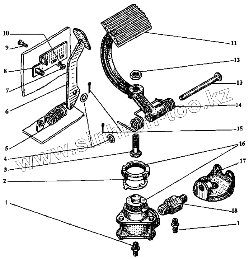 Каталог запасных частей к технике: ТВЭКС ЭО-3323. Установка педали тормоза хода