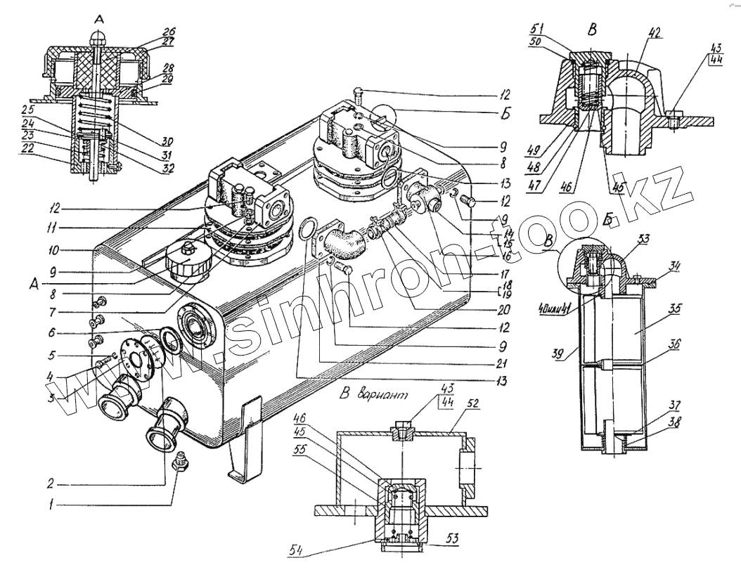 Каталог запасных частей к технике: ТВЭКС ЭО-3323А. Бак гидравлический (ЭО-3323А.08.88.000)