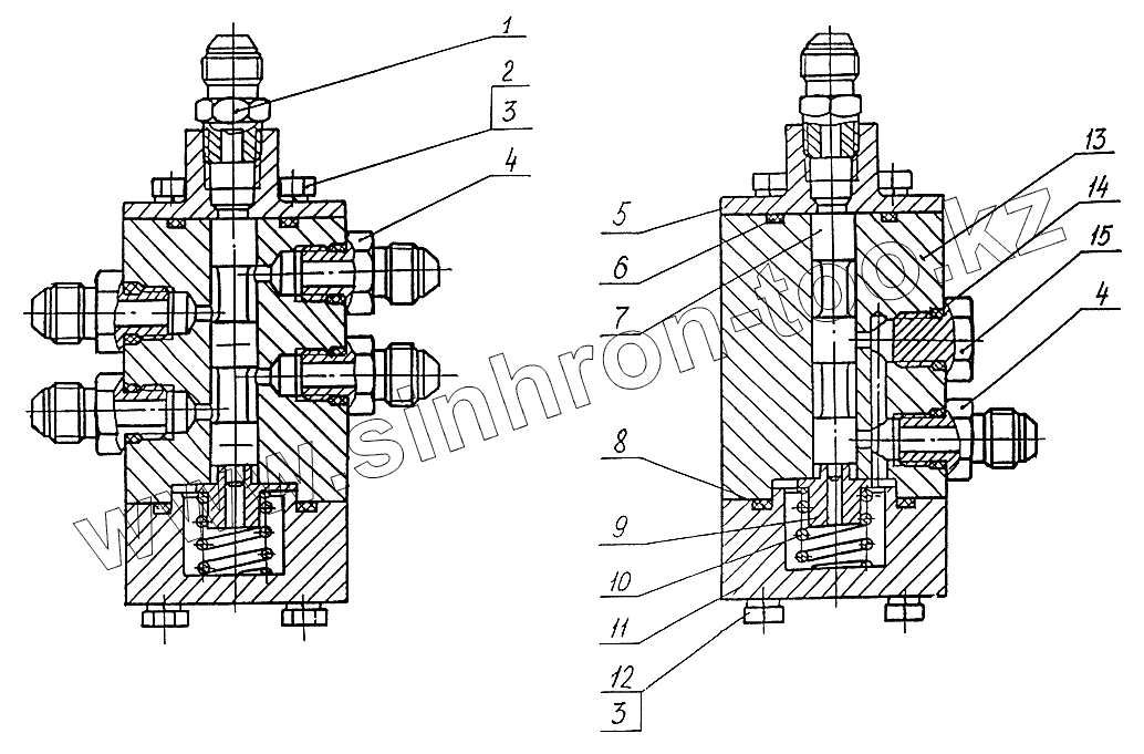 Блок переливных клапанов (ЭО-3323А.08.07.400)
