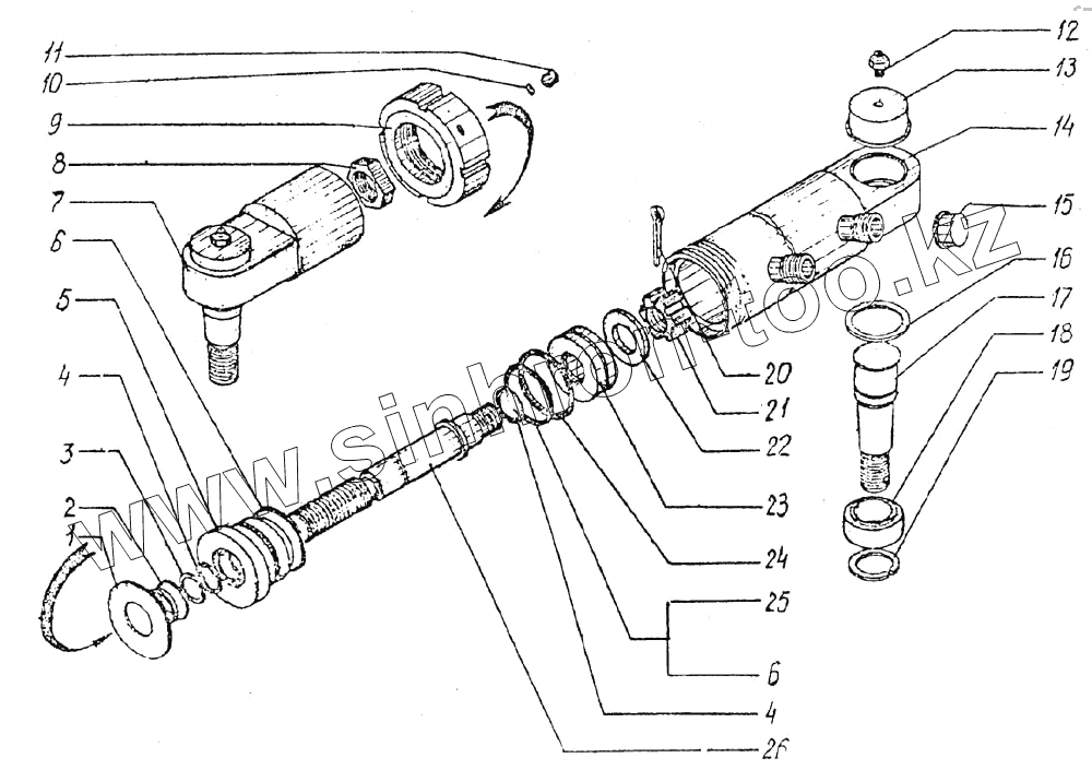 Каталог запасных частей к технике: ТВЭКС ЭО-3326. Цилиндр поворота колес левый