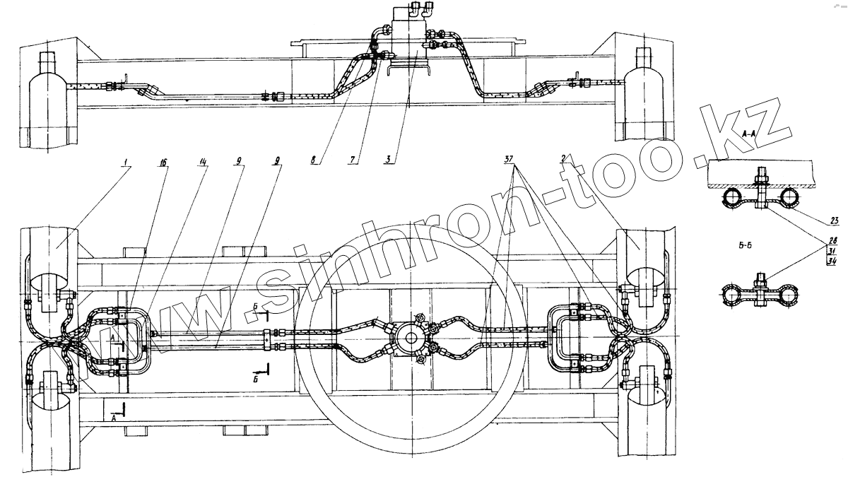 Гидроуправление на поворотной платформе (монтажная схема)