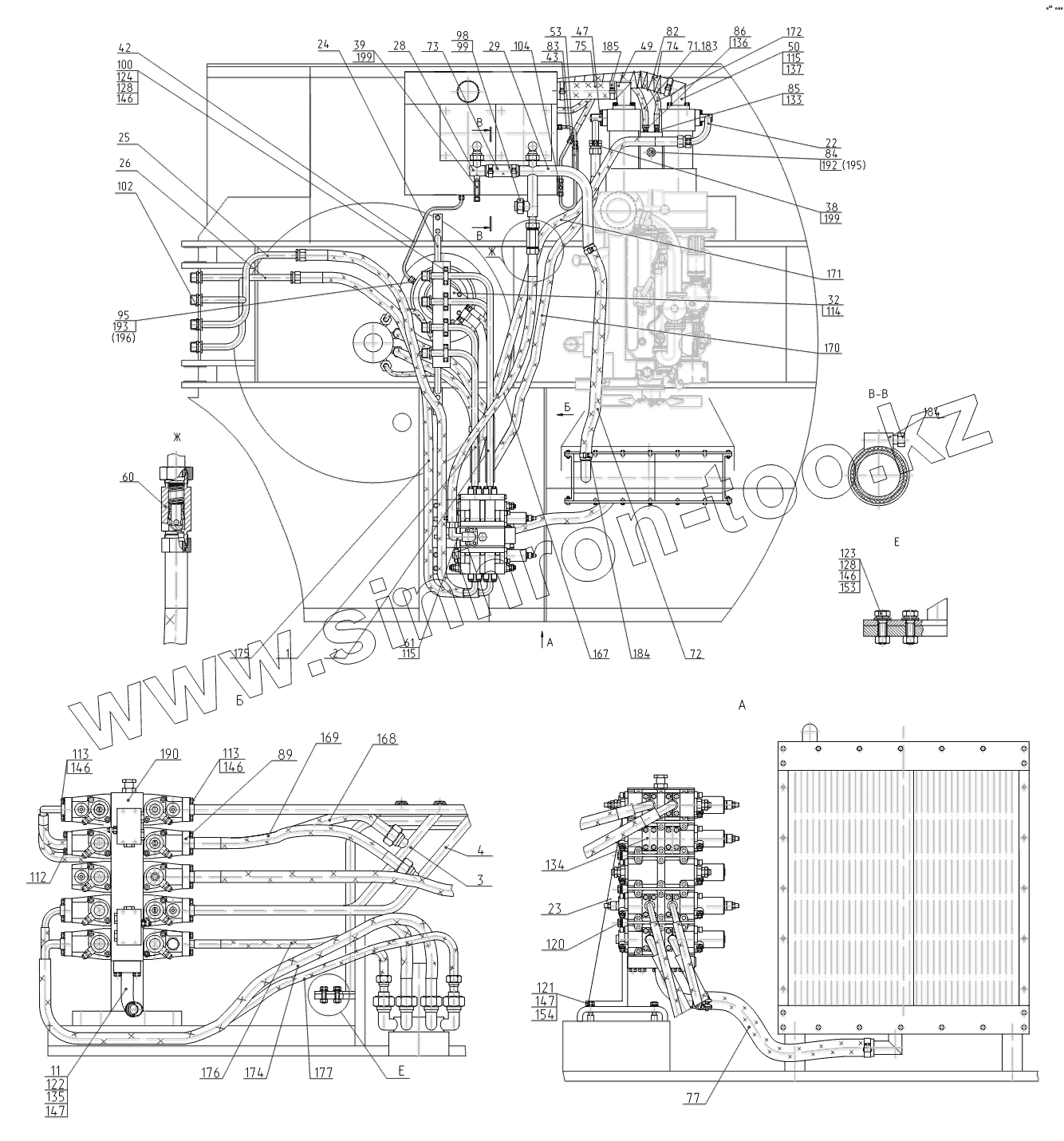Каталог запасных частей к технике: ТВЭКС ЭОВ-3521. Трубопроводы на поворотной платформе
