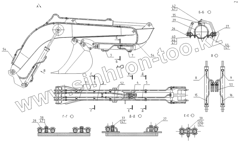 Каталог запасных частей к технике: ТВЭКС ЭОВ-3521. Трубопроводы рабочего оборудования