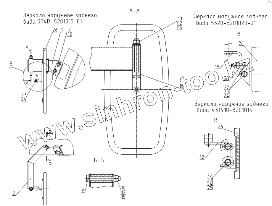 | 26 | 504В–8201015-01ОСТ37.001.451-87 | Зеркало наружное заднего вида | |
