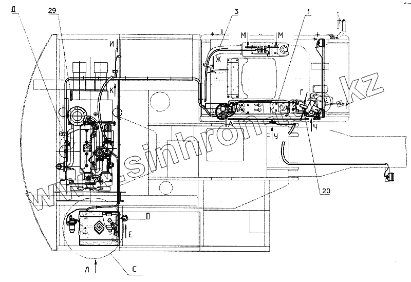 Гидроуправление на поворотной платформе (монтажная схема) (с гидравликой ПСМ)