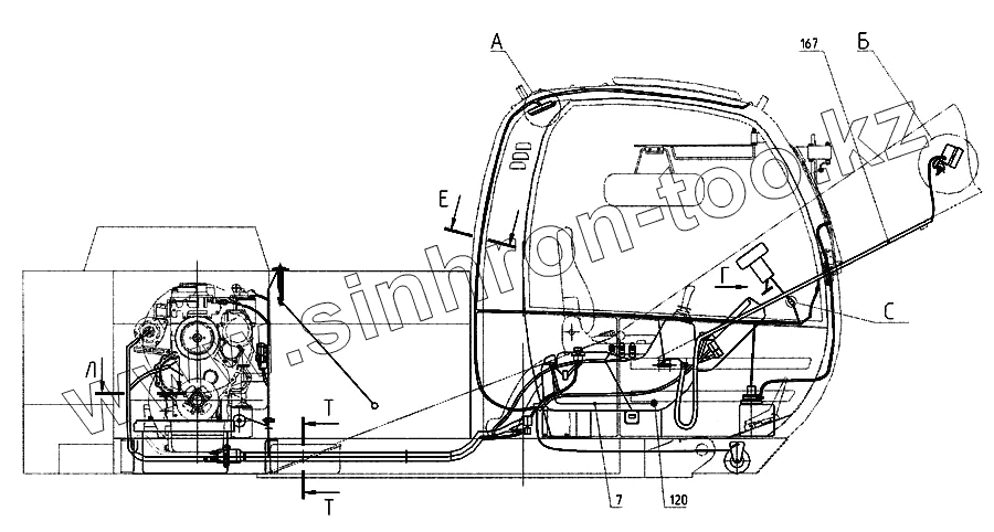 Гидроуправление на поворотной платформе (монтажная схема) (с гидравликой "Bosch-Rexroth")
