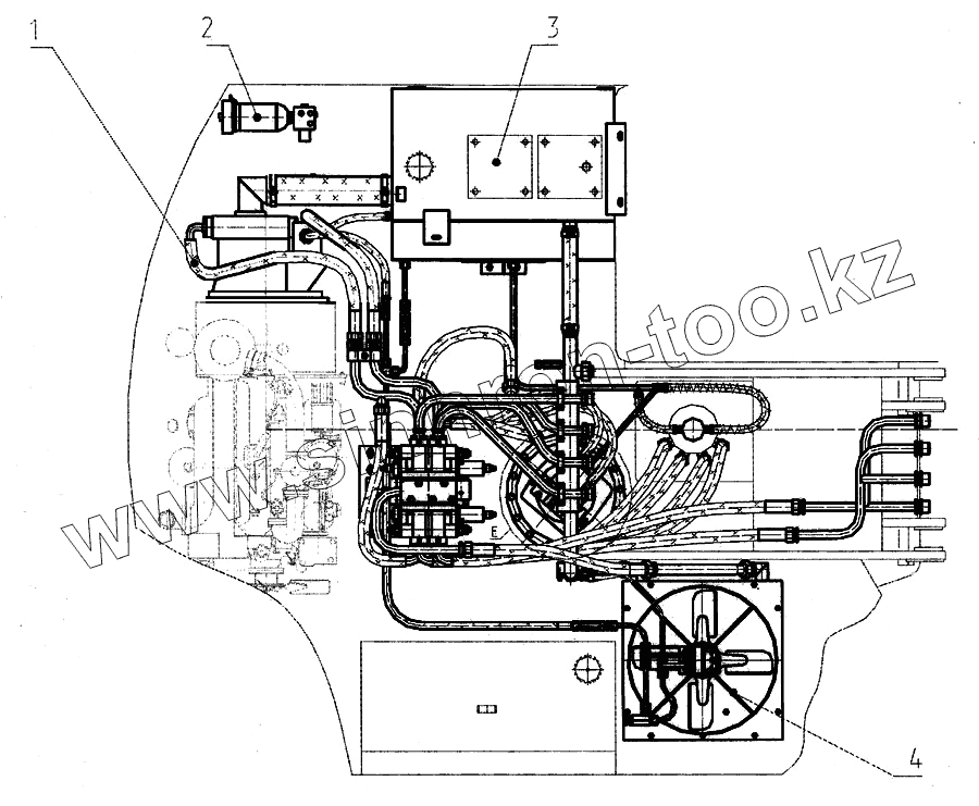 Гидроуправление на поворотной платформе (монтажная схема) (с гидравликой "Bosch-Rexroth")
